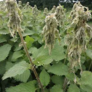 Echter Mehltau ist eine häufig vorkommende Pilzerkrankung bei vielen Gartenpflanzen, einschließlich der Taubnesseln. Er zeigt sich durch weißliche, mehlige Flecken auf Blättern und Stängeln. Vorbeugend wirkt eine gute Luftzirkulation zwischen den Pflanzen. Befallene Stellen sollten bei Entdeckung sofort entfernt werden, um eine Ausbreitung zu verhindern. Bei starkem Befall können Fungizide oder Hausmittel wie verdünnte Milch oder Backpulverlösungen zum Einsatz kommen.